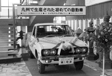 1976年12月から車両生産をスタート。九州ではじめて生産された、記念すべき車両第一号車は「ダットサントラック」。