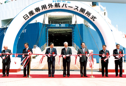 工場内に日産専用外航埠頭を開港。これにより工場・車両保管場所・船積みが一体地にて可能となった。 |